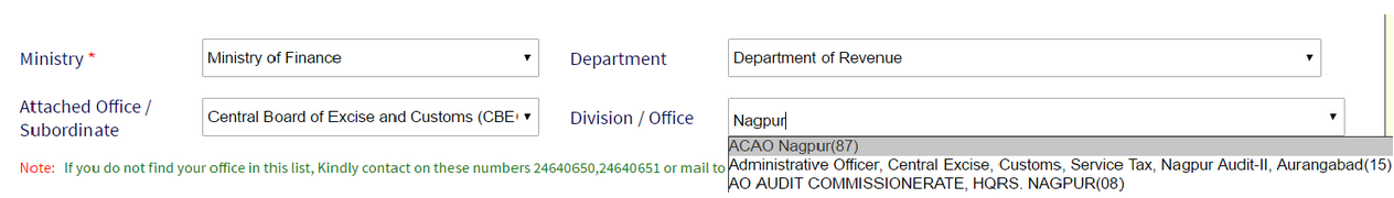 Apart from this List in Division/office is searchable i.e. if your office is in Nagpur and you type